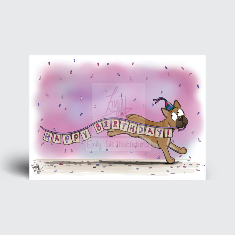 Our Frenchie Happy birthday card design is printed on A5 350gsm Uncoated Card and paired with an envelope.