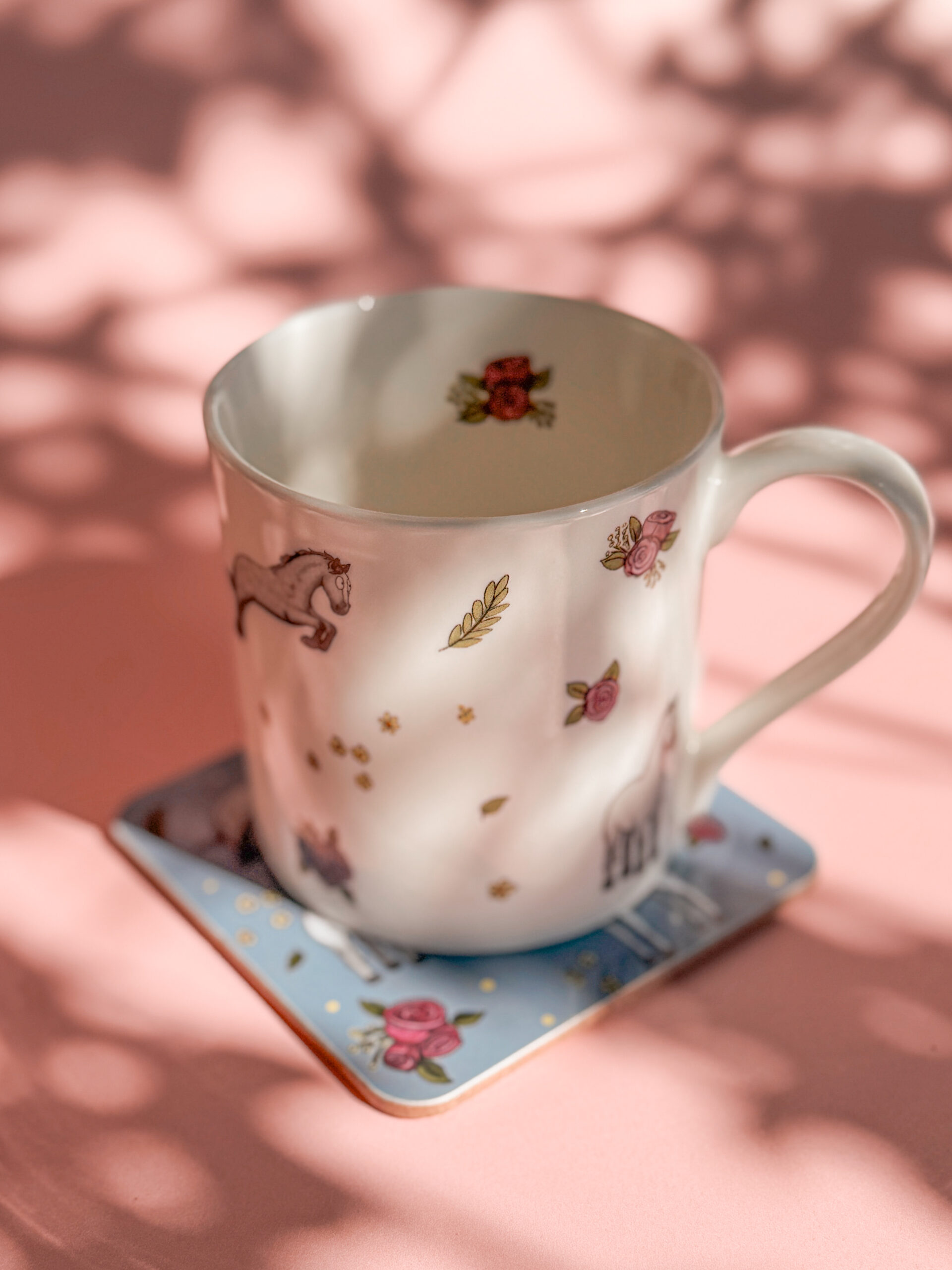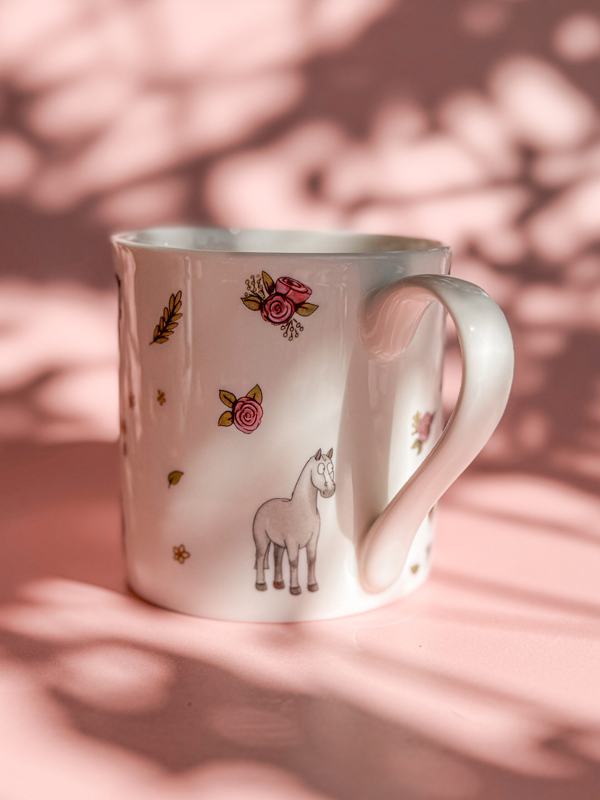‘Grey Horse & Roses’ Fine Bone China Mug
